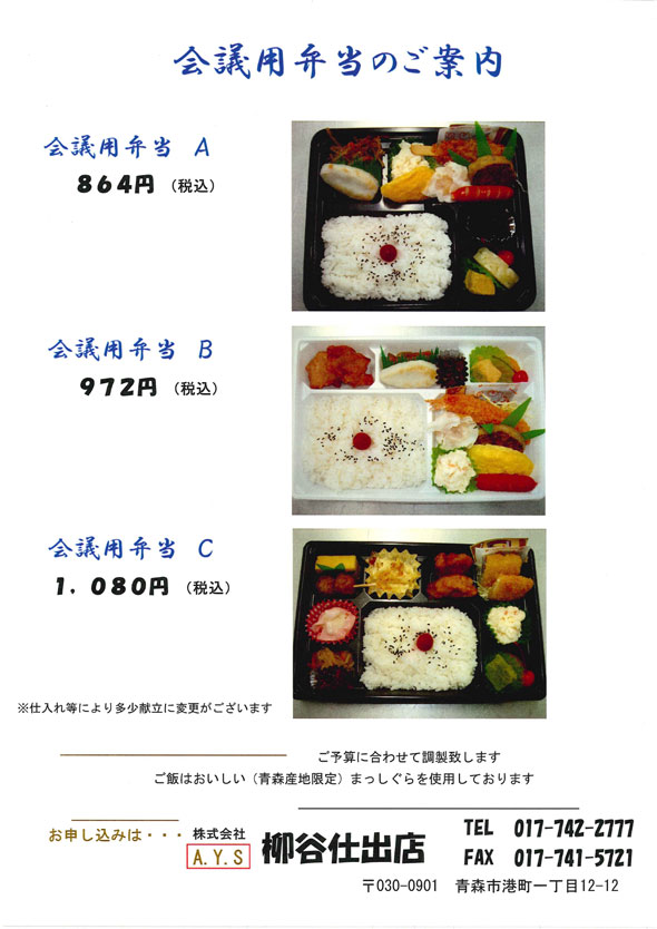 仕出し弁当の配達・宅配・デリバリーは正確に青森の仕出し店、柳谷仕出店のお弁当をご賞味ください